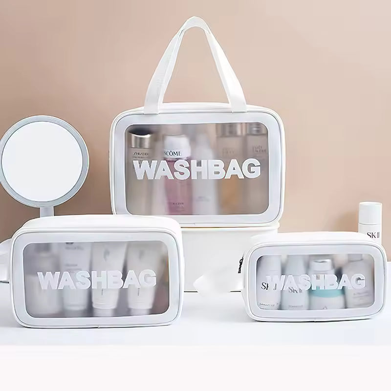 3-Piece Clear Travel Toiletry Bag Set – PVC Waterproof Makeup Pouch