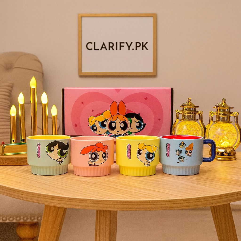 Bring fun to every sip with the 4pcs Powerpuff Girls Cup Set from Clarify.pk. Featuring vibrant prints of Blossom, Bubbles, and Buttercup, this durable cup set is perfect for kids, teens, and cartoon lovers. Made with safe and sturdy material, these cups are ideal for juice, milk, water, or party drinks. A must-have collectible and a perfect gift for fans of the classic cartoon, this set adds joy and color to your tableware collection.