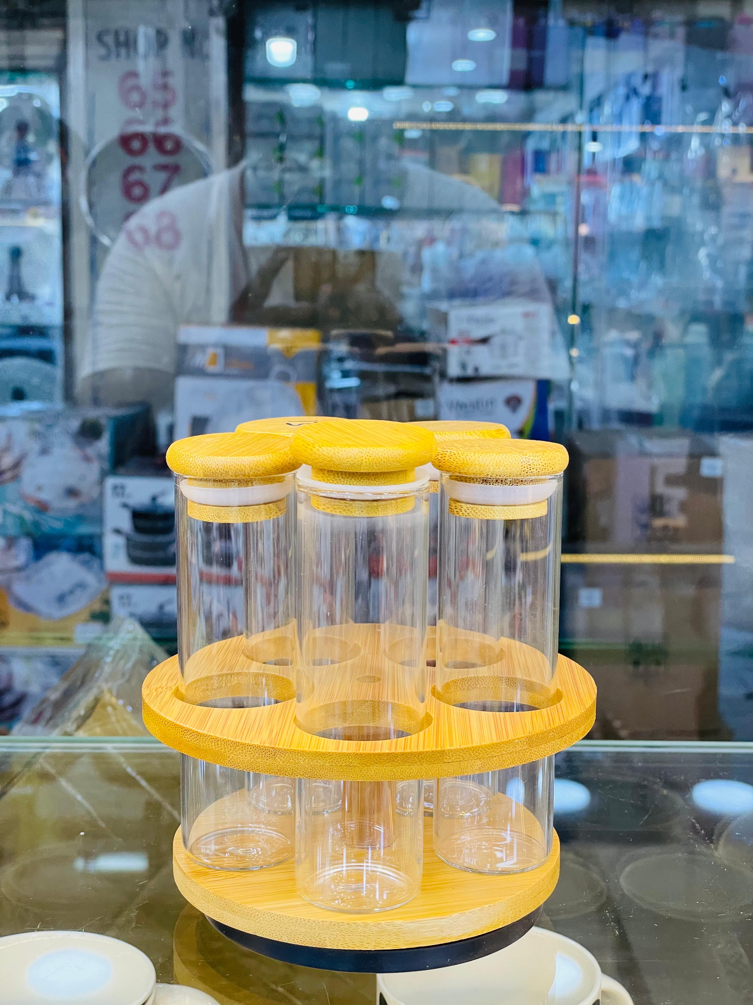 Upgrade your kitchen with the Luxury Bamboo Revolving Spice Set, designed for both style and convenience. Crafted from premium natural bamboo, this 360° rotating stand holds multiple glass jars for your spices and seasonings. Its smooth rotation ensures easy access while cooking, while the airtight lids keep your ingredients fresh and aromatic. A perfect blend of functionality and elegance, this spice rack adds a modern, eco-friendly touch to any kitchen.