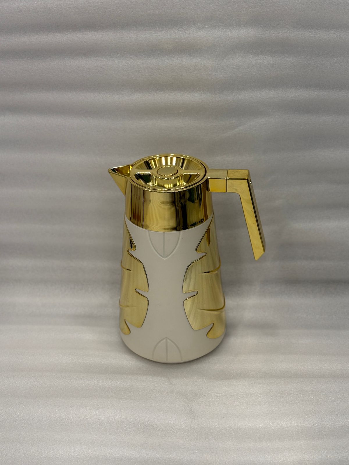Upgrade your tea and coffee experience with this luxury gold & white vacuum flask. Designed with a premium metallic finish and elegant detailing, this 1 liter insulated thermos keeps beverages hot or cold for hours. Its durable build, leak-proof lid, and easy-pour spout make it perfect for home, office, or gatherings. A stylish yet practical addition to your serveware collection.