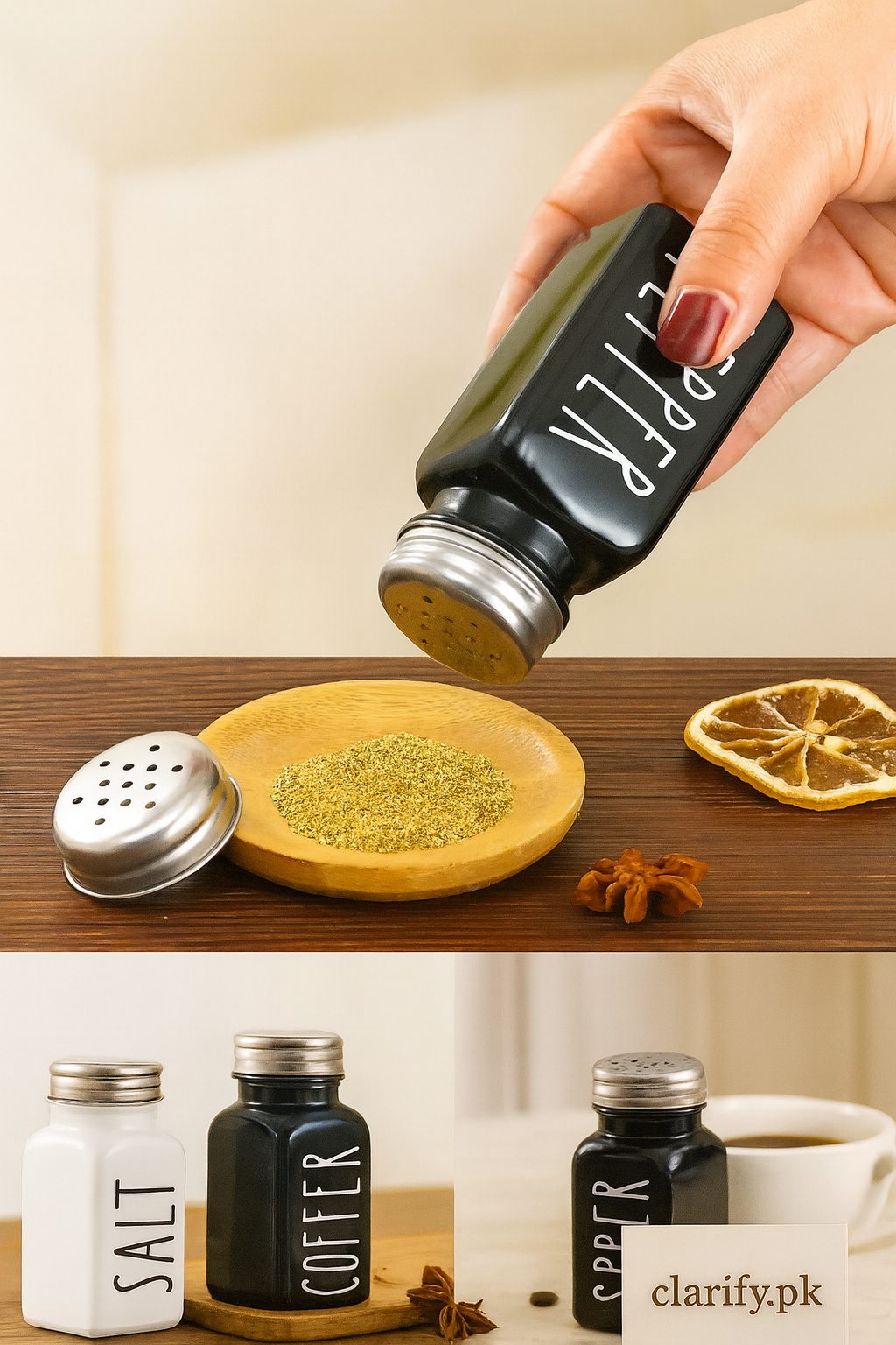 Upgrade your dining table with this salt and pepper shaker pair, designed for both style and functionality. Made with durable material, these shakers provide easy seasoning and a modern look to your kitchen or dining space. Compact, refillable, and easy to clean – a perfect choice for everyday meals, family gatherings, or special occasions.