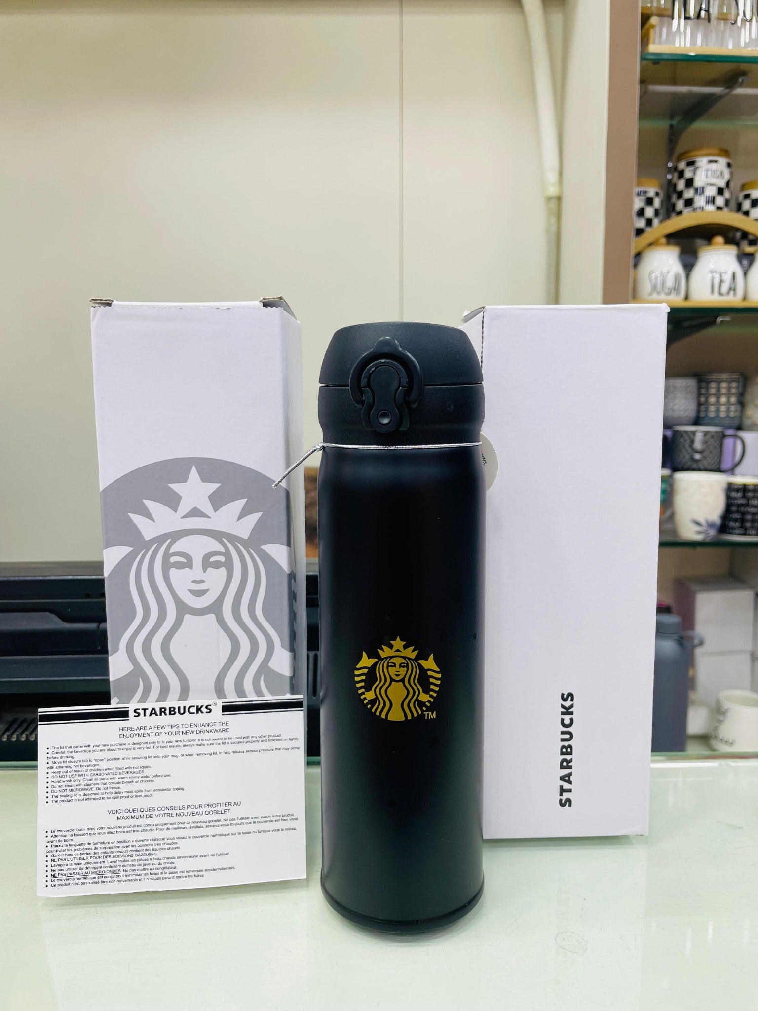 Stay sleek and hydrated with the Starbucks Premium Black Edition Bottle from Clarify.pk. Crafted with premium stainless steel, it keeps beverages hot or cold for hours. The elegant black finish adds sophistication, making it perfect for daily use, office, travel, or gifting. Durable, leak-resistant, and portable, this bottle combines functionality and style, making it an essential accessory for anyone who values both performance and design in their hydration gear.